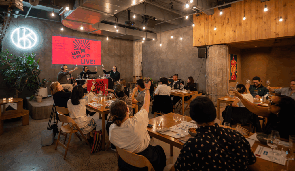 Yeah. And normally I kind of pick one of these things from the list, but I’m gonna kind of go through a few of them today. So number one, show notes. We’ve got show notes that go on, uh, on the website for every episode. Tonight’s show notes will include photos of the labels for all the sakes you had tonight. It’s gonna have all the information about Rice Vice, about proper sake, you know, their newsletter, everything you’re gonna want to see. So even if you’re here in the room, you probably wanna check that out. We always have a written transcript of the episode, and I have mercy on whoever has to transcribe this one because it was, it was a lot. We have, uh, swag and t-shirts over at the shop at SakeRevolution.com. And you know, the algorithm still rules. So if you have a place you like to listen to podcasts, please go ahead and leave us a review. So on that note, please raise your glass. You guys catch some sake, right? Okay. Remember to keep a drinking sake and Kanpai!. Woo.